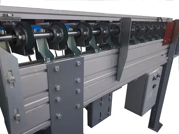 - Rulolar arası otomatik çalışan 90 derece triger kayıuşlı transfer konveyörü