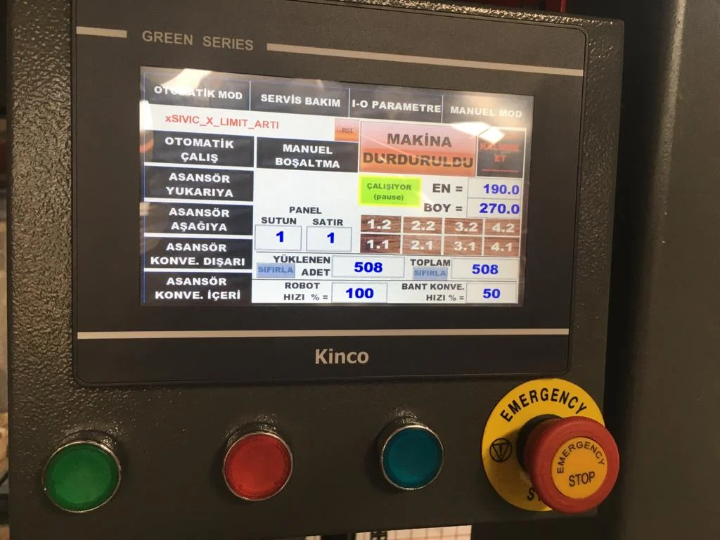 - Çalışma hızı: dakikada 8-18 panel yükleme veya boşaltma